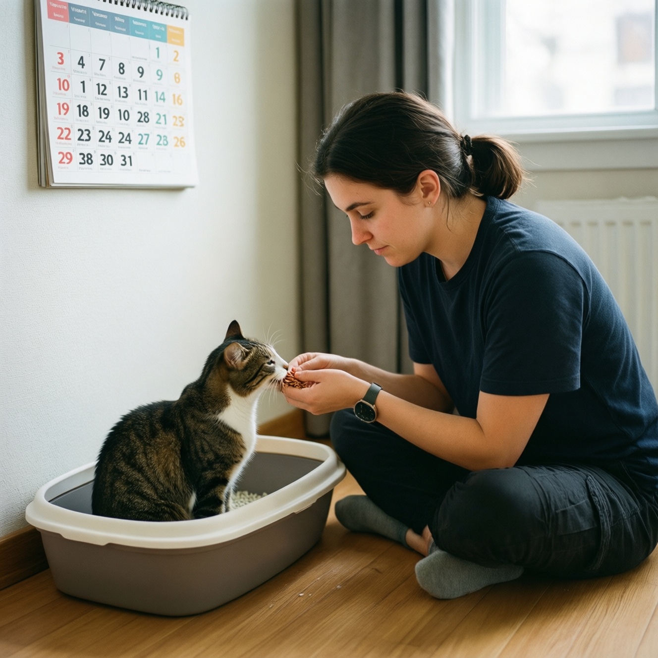- Лоток пахнет или стоит в проходном месте. Признаки: промахи, копание рядом, отказ заходить. Решение: ставьте лоток в спокойную зону, мойте регулярно без хлорки/парфюма, подберите наполнитель, который кошке приятен по текстуре.