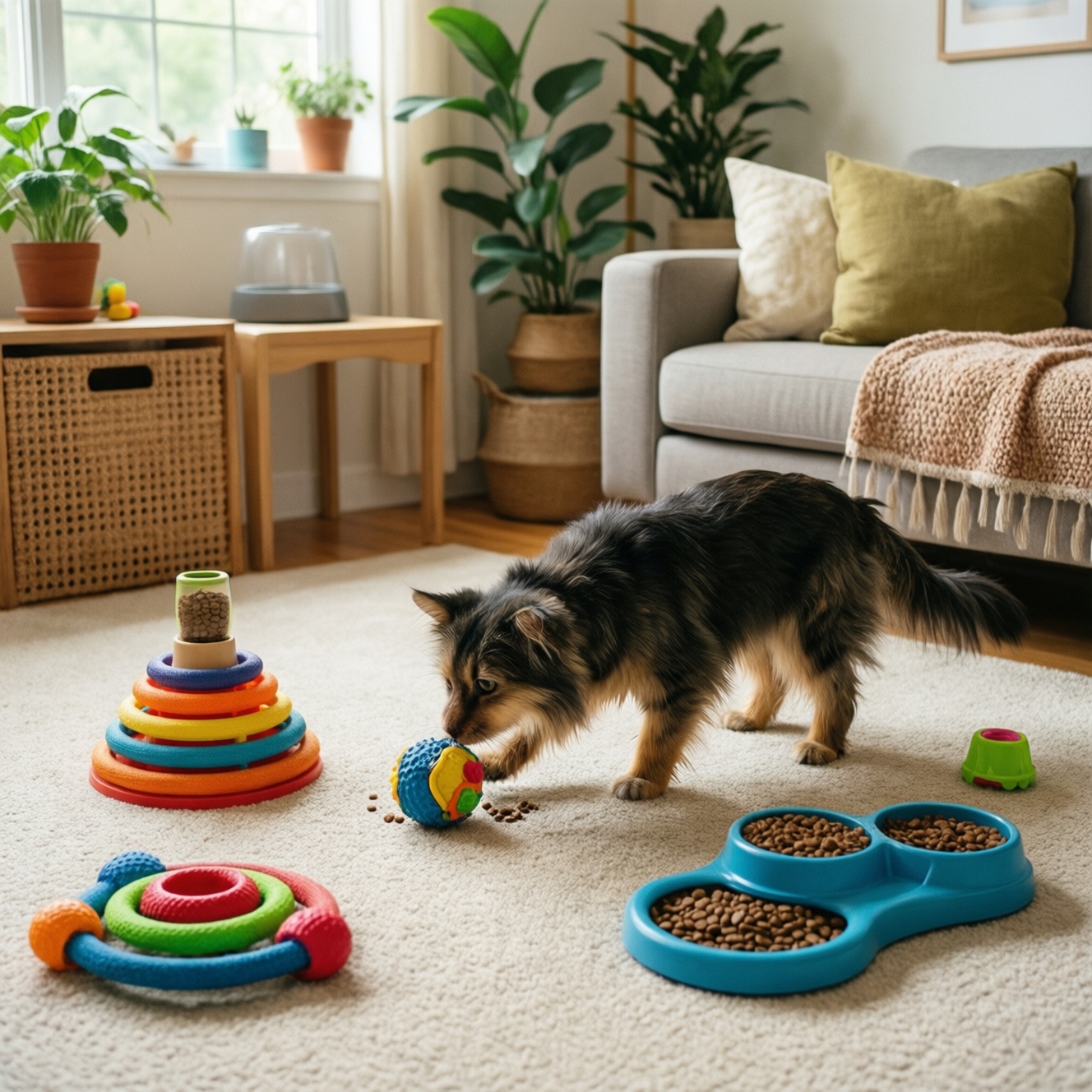 Кому особенно полезно: животным, которые долго остаются одни, молодым активным питомцам, "пищевикам" (мотивированным едой), животным с лишним весом (через кормовые задачи вместо миски).